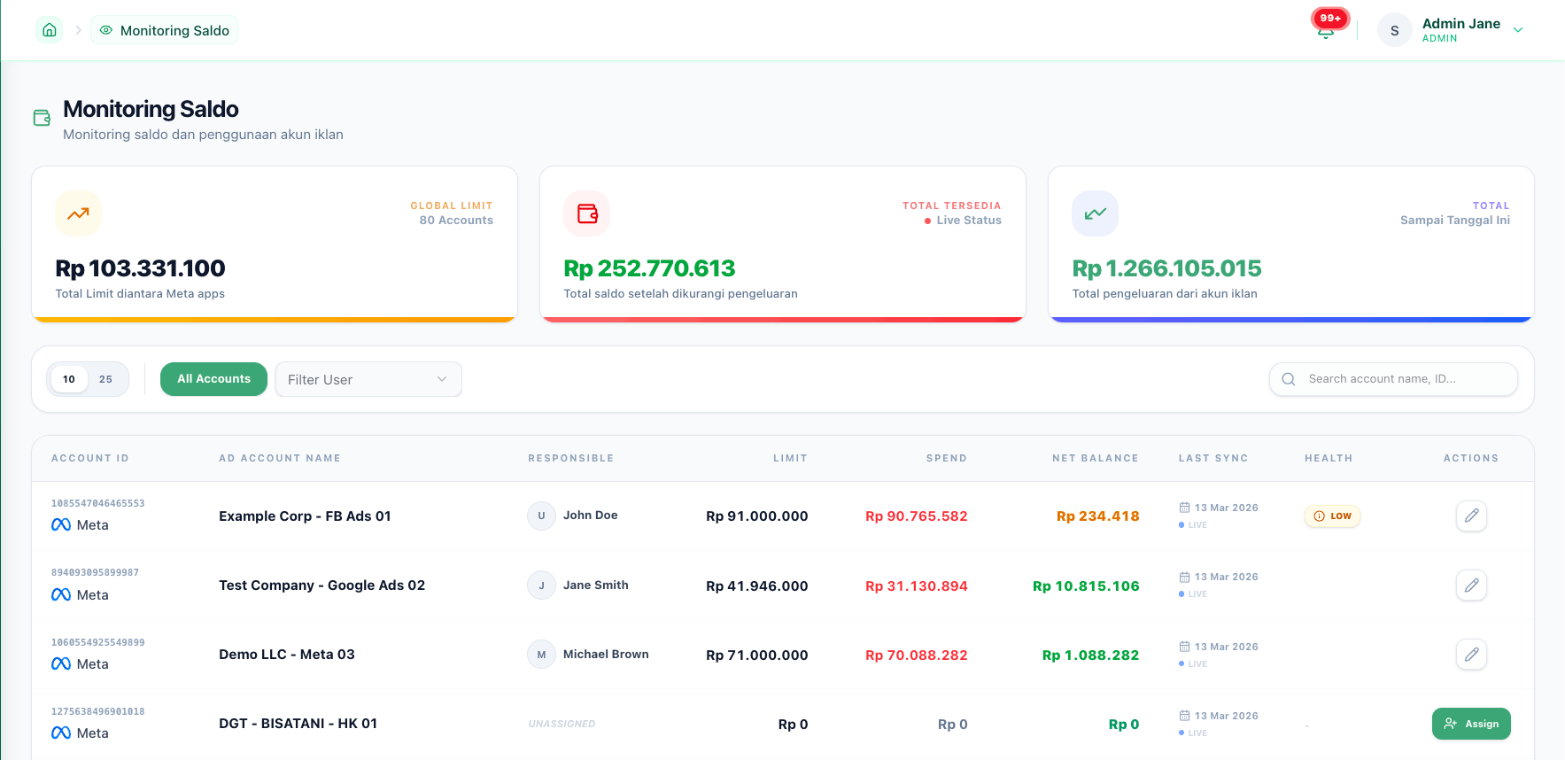 Terintegrasi untuk kebutuhan campaign dan operasional Meta Ads.